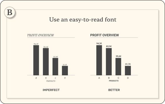 De titels hebben verschillende groottes waardoor duidelijk onderscheid is. Hierdoor wordt het sneller duidelijk waar de grafiek voor dient en welke informatie het verstrekt.